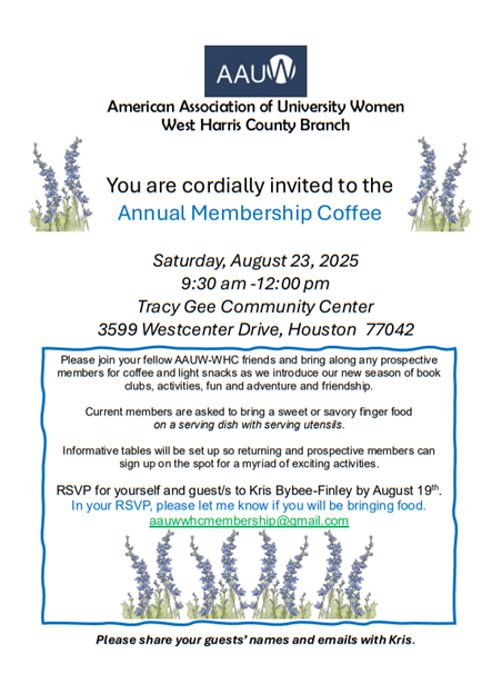 © 2025 AAUW West Harris County (TX) Branch. All Rights Reserved.