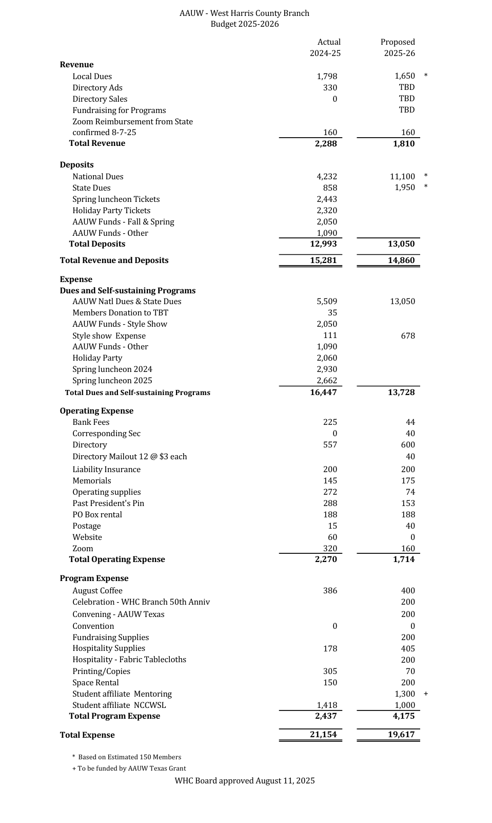 WHC Budget 2025-2026